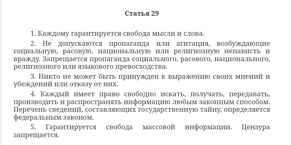 P.S. Пока лазил в Гугл, чтобы точно проверить, закралась мысль: сколько ещё осталось до того момента, когда сама попытка прочитать Конституцию будет приравнена к подрывной деятельности?