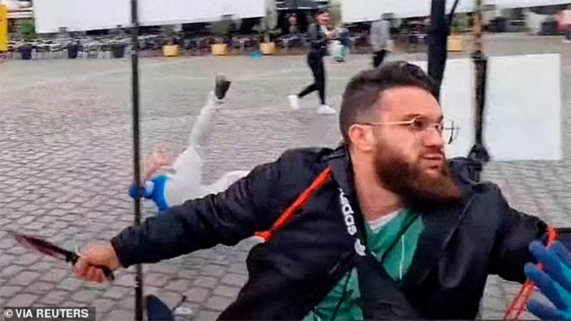 По Сети широко разошелся видеоролик с тем, как в эту пятницу некий человек на рыночной площади напал с ножом на антиисламский пикет в немецком городе Мангейме. Он размахивал ножом, его пытались остановить. Один из полицейских в этот момент задерживал другого человека (на еще одном видео видно, что человек в синей куртке тоже на кого-то нападал), человек с ножом напал на полицейского сзади и стал наносить ему удары ножом, после чего другой полицейский в него выстрелил. Перед нападением на полицейского этот человек нанес ножевые ранения пятерым участникам пикета.