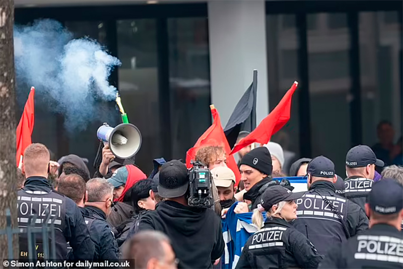 В воскресенье на этой площади прошла акция протеста членов правых партий, одновременно туда пришли левые активисты "Антифа", и между ними начались столкновения.