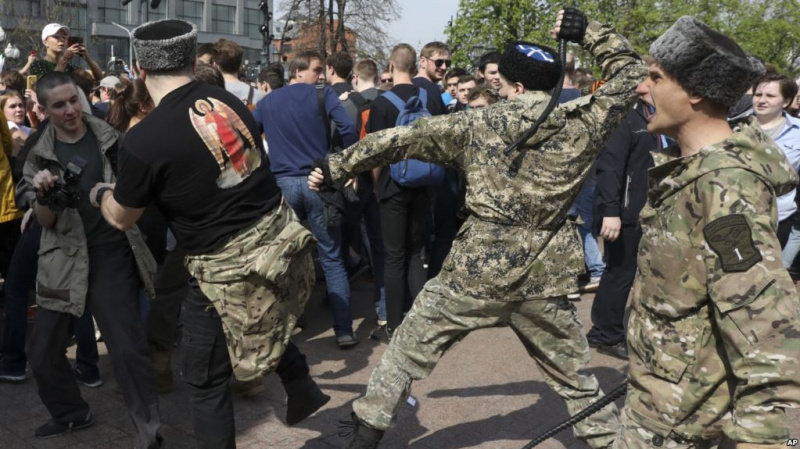 Напомним, в тот день участников митинга атаковали провокаторы, часть из которых была одета в казачью одежду. Они нападали на мирно стоящих людей, избивали их нагайками, после чего прятались за спинами полицейских. Некоторые ряженые казаки относились к организации «Центральное казачье войско», получившей грант от правительства Москвы на 16 млн руб. на «обеспечение безопасности при проведении публичных и массовых мероприятий на территории города Москвы».