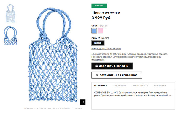Хотя, впрочем, налицо недоработочка. Если бы назвали не "шопер из сетки", а "шопер из стрингбэга" - можно было бы и 11999 рублей ставить.