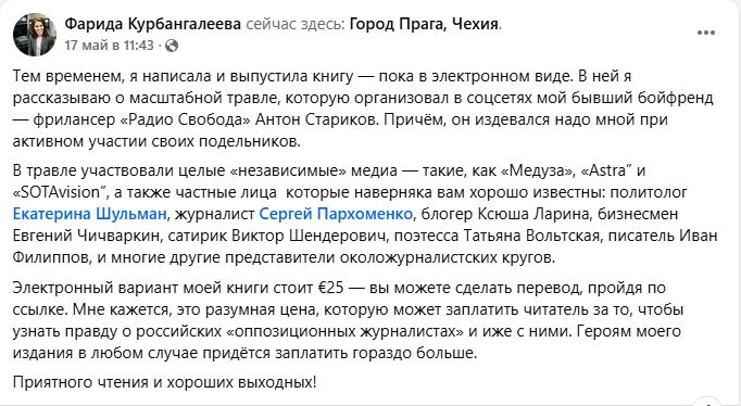 Там еще с Фаридой Курбангалеевой что-то случилось, что она разразилась таким постом: