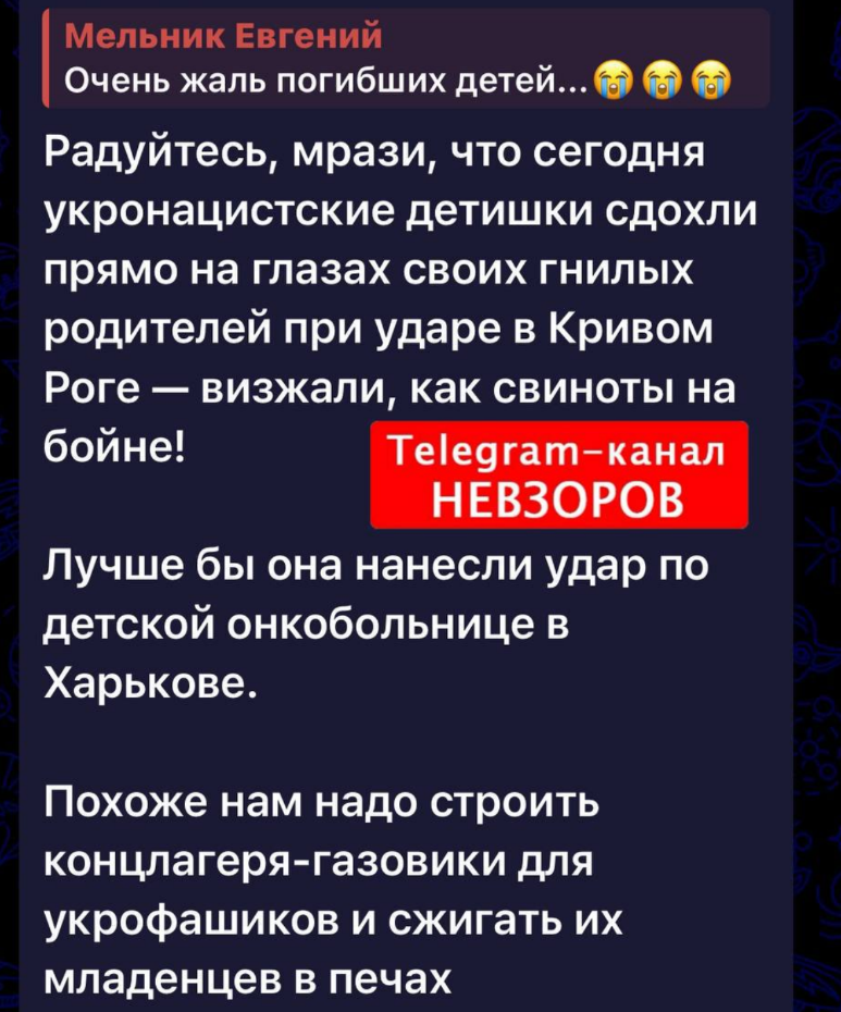 Поэтому в день скорби за детьми, погибшими в Кривом Роге, Харькове, завалил бы ты. Пожалуйста.