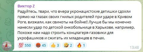 "Путин хочет мира", уверяет Трамп. Очередная демонстрация мирных намерений - удар баллистикой по Кривому Рогу. Разумеетсся, в очередной раз эти ублюдки типа как осуществили "высокоточное попадание в место проведения совещания командиров соединений ВСУ с западными инструкторами". 19 погибших, 9 из них - дети, ракета с кассетной частью взорвалась рядом с детской площадкой.
