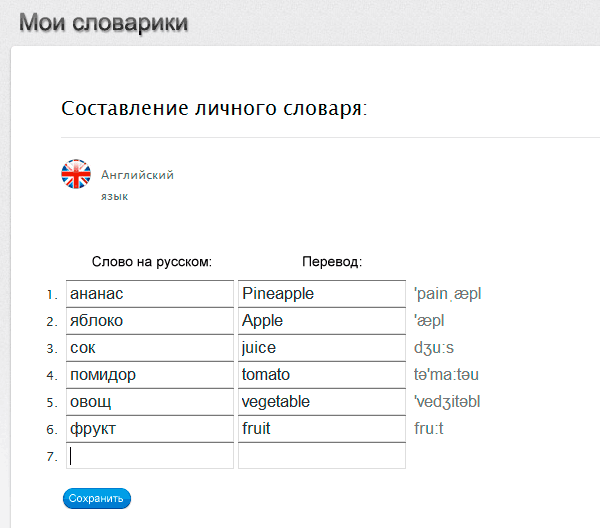 Этот проект (кстати, совершенно бесплатный) позволяет составлять свои собственные словари для запоминания, а также использовать уже готовые наборы для различных ситуаций.