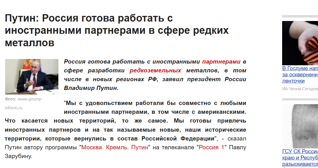 «Они русскоязычные», - сказал он о восточных территориях. «Там прошли референдумы, на которых подавляющее большинство жителей заявили, что хотят быть под властью России».