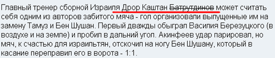 Лента.ру, аналитическая статья в разделе "Спорт" - "Итоги матчей сборной России с Израилем и Эстонией". Аналитическая, подчеркиваю, статья. В разделе "Спорт" Ленты.ру. Вот абзац: