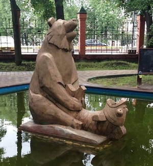 А вообще, мне эта скульптура представляется как "Емеля просит щуку, чтобы она всё отменила, что он вчера спьяну у неё попросил".