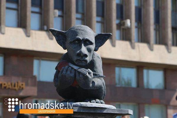 Скульптура — своего рода образ России в виде медведя, во главе которой находится Путин.