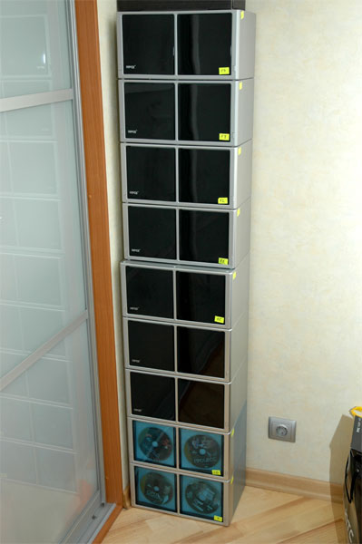 По поводу стоек для DVD - стоимость хранений 1 Гб для стоек, конечно дешевле, но харды мне кажутся намного удобней.