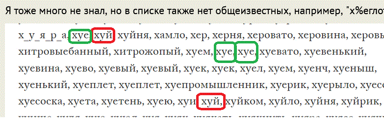 В документе слова и выражения отсортированы по группам: контекст педофилии, половых отношений, ну и непосредственно бранные слова (там столько всего интересного).
