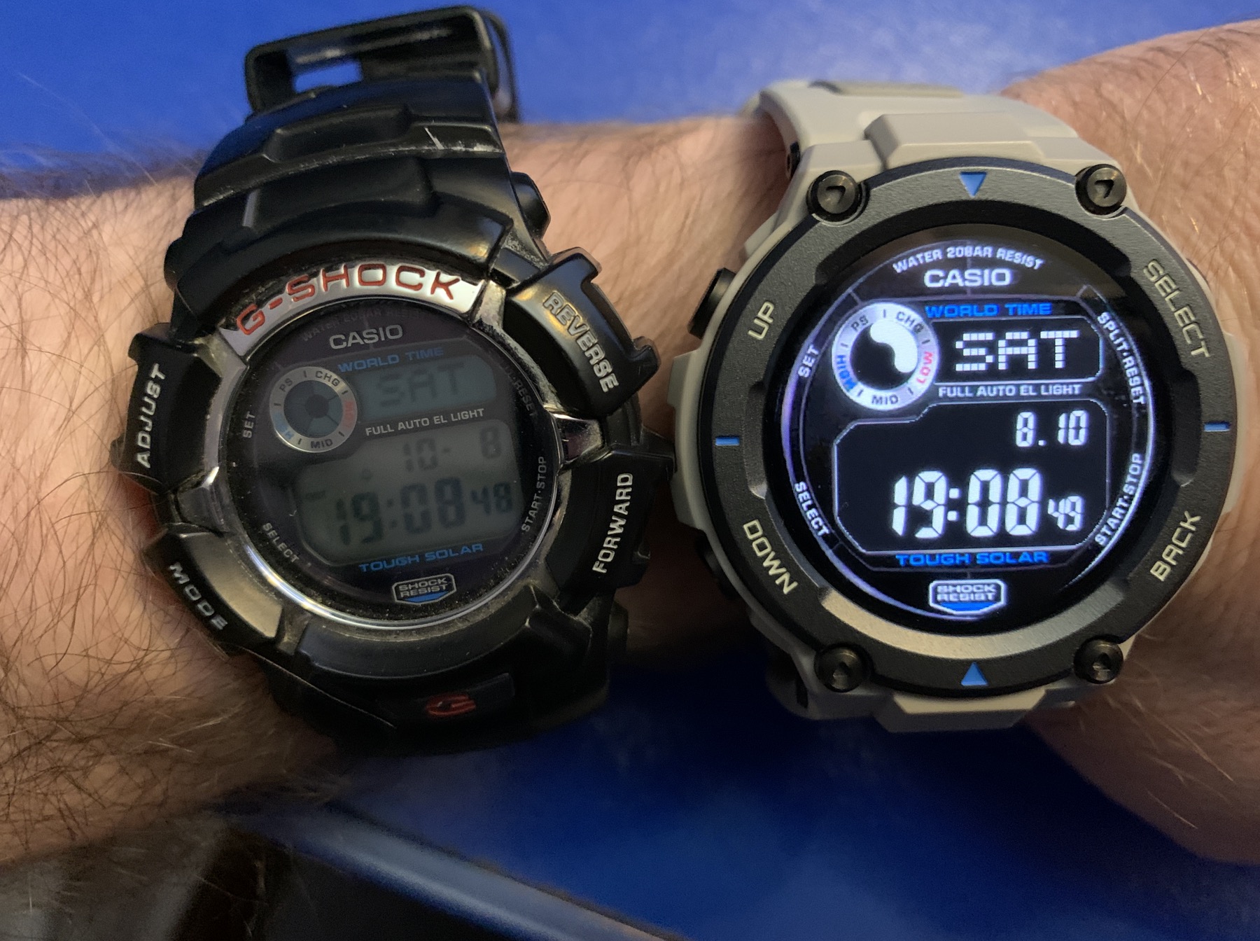 Неделю назад купил первые в моей жизни смарт-часы. Amazfit T-Rex Pro. Всё-таки больше понравился дизайн(до этого последние 9 лет носил джишоки 2310). Всё-таки необычный опыт теперь, когда смотришь, а не села ли батарейка в часах, хотя в моём режиме пока только на 50% разрядилась с пятницы. Пробовал программу для создания циферблатов, возможностей море, надо только хорошо владеть фотошопом.