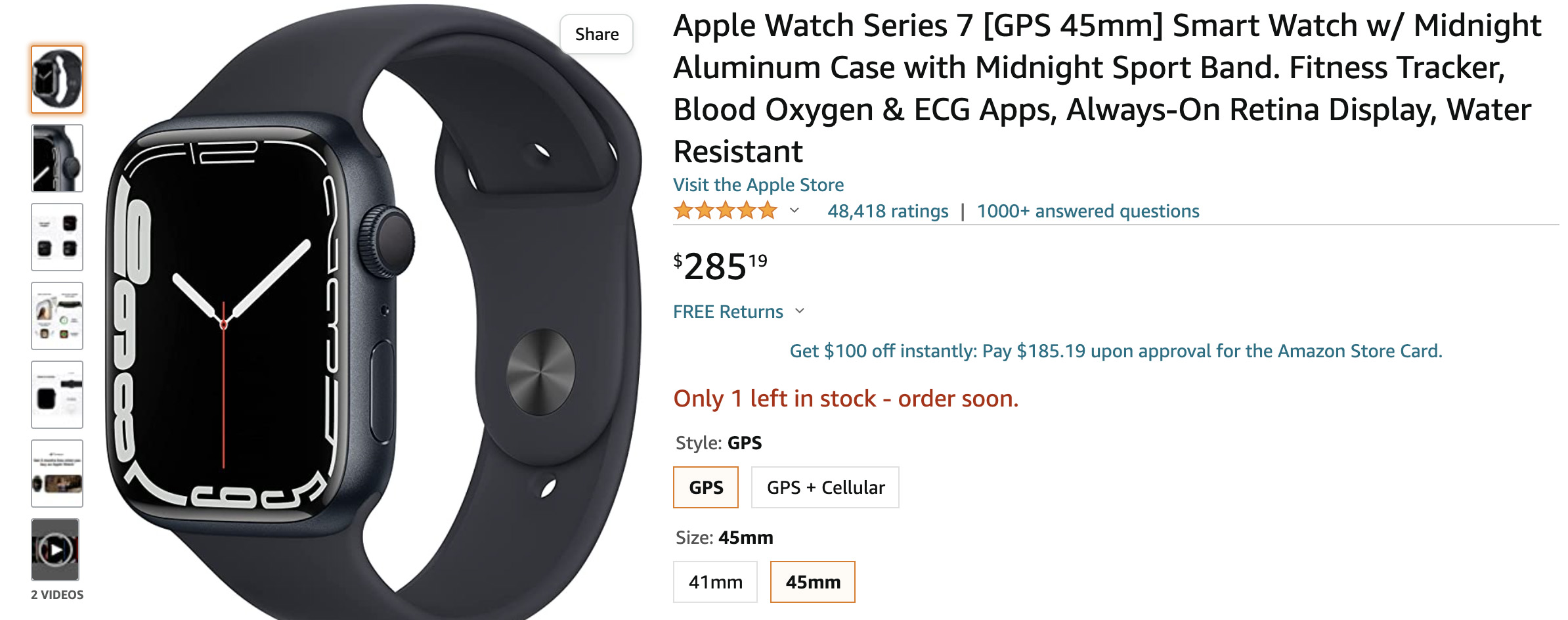 А отличные прошлогодние 7й серии, которые практически такие же, как и новая серия 8, сейчас в американском Амазоне есть 45мм за 285 долл.