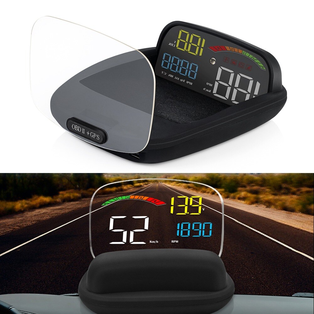 Я на алиэкспрессе купил коробочку, проецирующую на лобовое стекло машины скорость, обороты и текущее время.