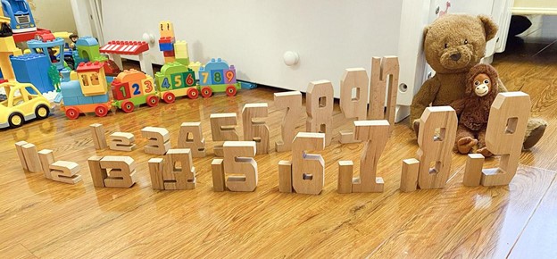 Идея проста, как всё гениальное: перед вами большой набор деревянных цифр. Единичка – самый маленький элемент. Двойка ровно вдвое выше, чем единица. Шестёрка втрое выше двойки и вдвое выше, чем цифра 3. Каждая цифра имеет высоту, точно соответствующую своему значению!