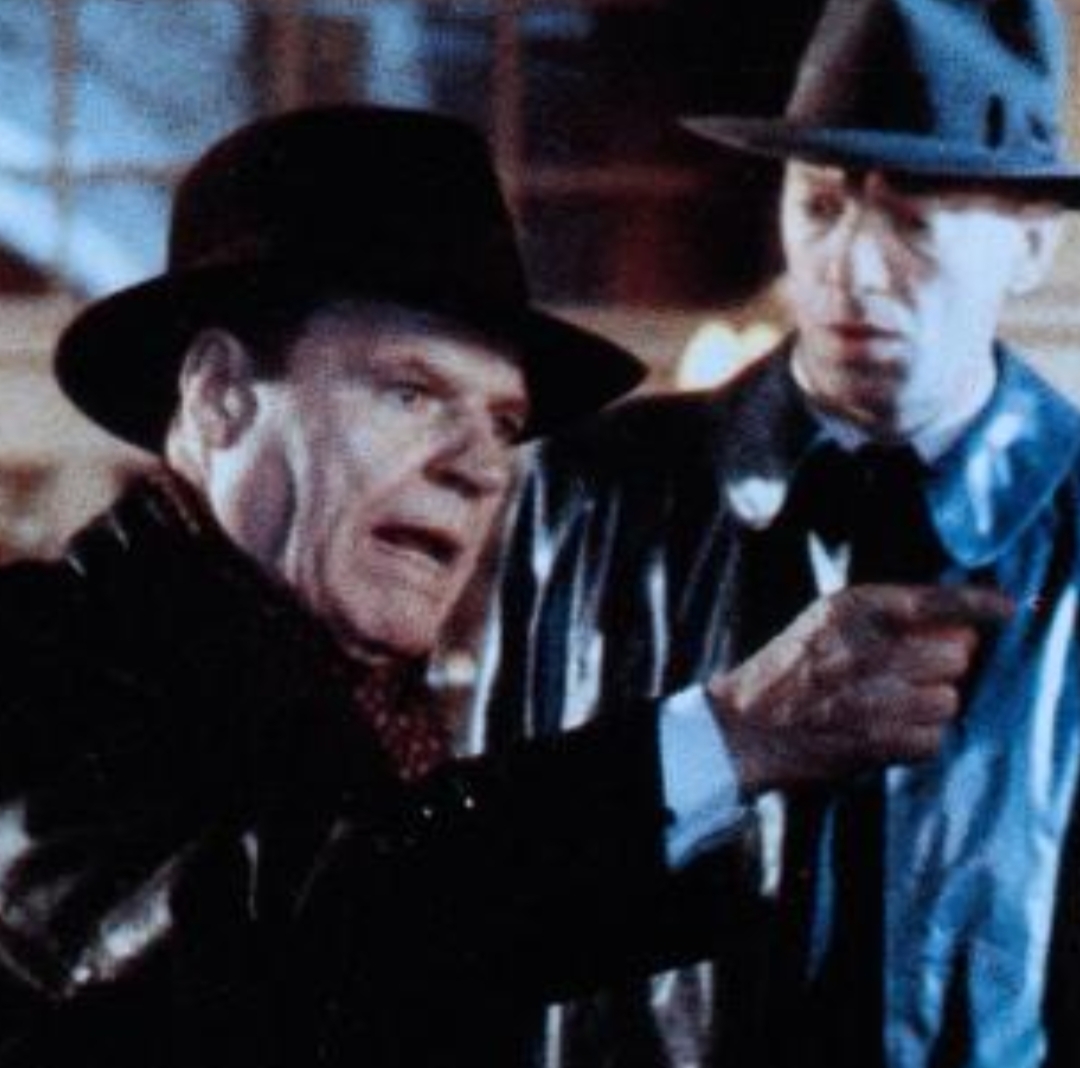 Но судя по магазину с надписью "Rosenblum" и характерному костюму, эти кадры — точно из фильма "Оскара" (L'As des as, 1982). В этой комедии Бельмондо играет Жо Кавалье — бывшего летчика, который оказывается в водовороте событий, связанных с нацистами и еврейским мальчиком в 1930-х годах. Магазин «Rosenblum» — часть декораций еврейского квартала, что подтверждает это.