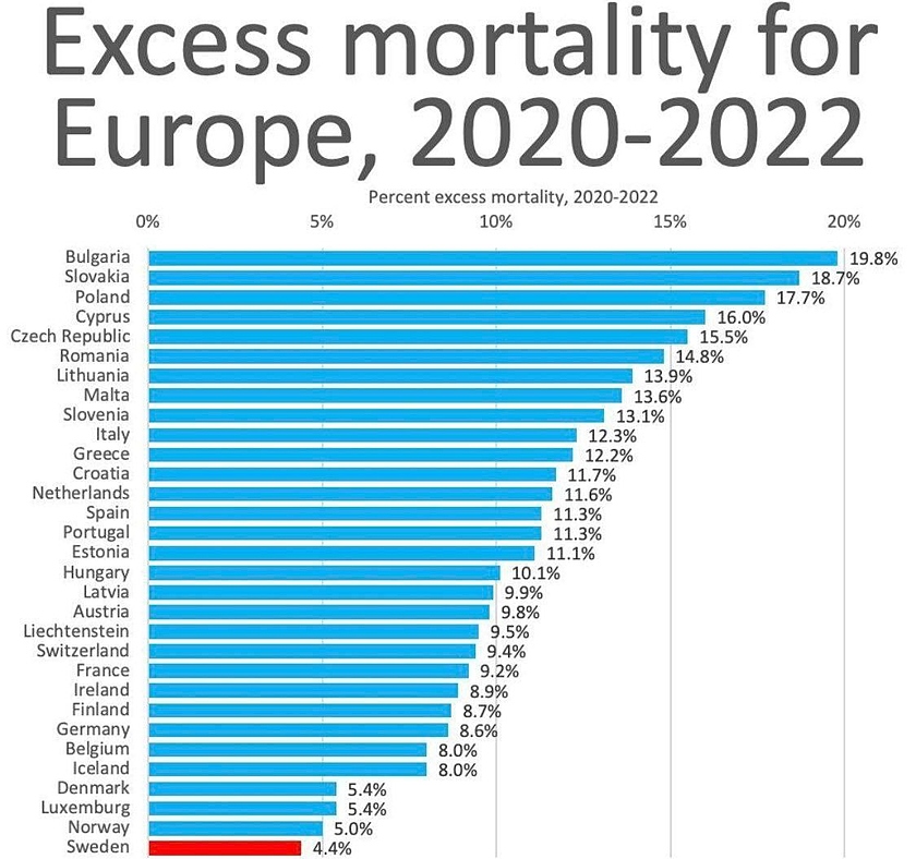 Где у Швеции избыточная смертность гораздо выше чем у соседних с ней стран.
