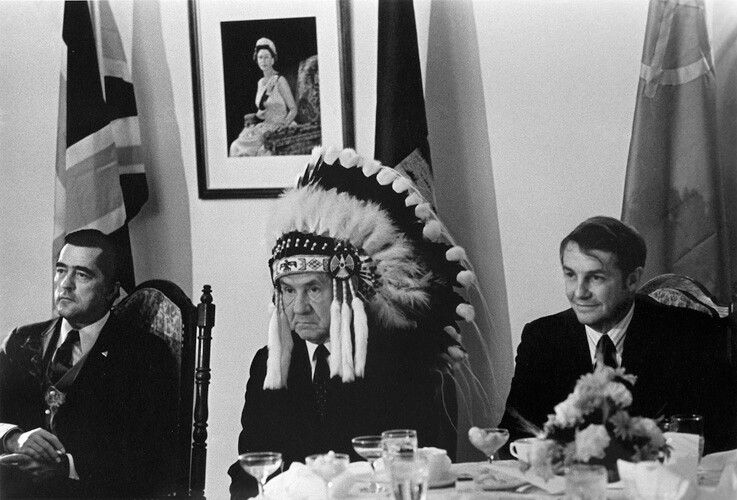 "А. Н. Косыгин в головном уборе вождя индейского племени, 1971
