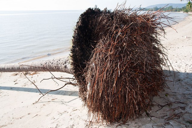 Минутка ботаники. Вы видели, как корни у пальм устроены? Это однодольные растения и у них мочковатая корневая система с множеством одинаковых корней в отличие от стержневой системы с главным корнем. В общем как у злаков, только такая огромная мочалка. Сломать её в принципе невозможно, а если почва плотная, то и выдрать весьма затруднительно.