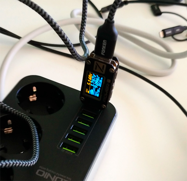 На "Али" как-то углядел любопытную штуку - удлинитель на три розетки и он же зарядный хаб на шесть USB-портов. USB выдает 5V и до 3.4А. Обычного этого вполне достаточно для всех устройств: поставил на ночь заряжаться и голова не болит.