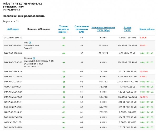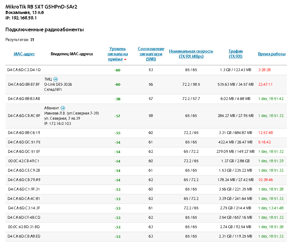Радиооборудование: может устанавливаться как на узел связи, так и абоненту. Система позволяет указывать азимут и сектор, контролирует уровень сигнала подключенных абонентов, ведет контроль активности, взаимодействует со складом и так далее.