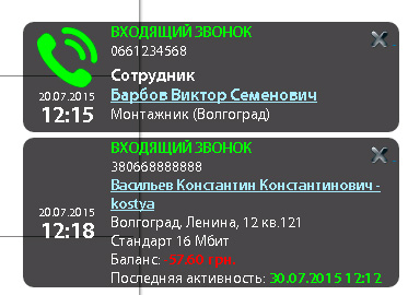 Модуль взаимодейтсвия с телефонией Asterisk: определение до ответа на звонок абонента по входящему номеру телефона, определение сотрудников компании, регистрация и просмотр списка звонков.