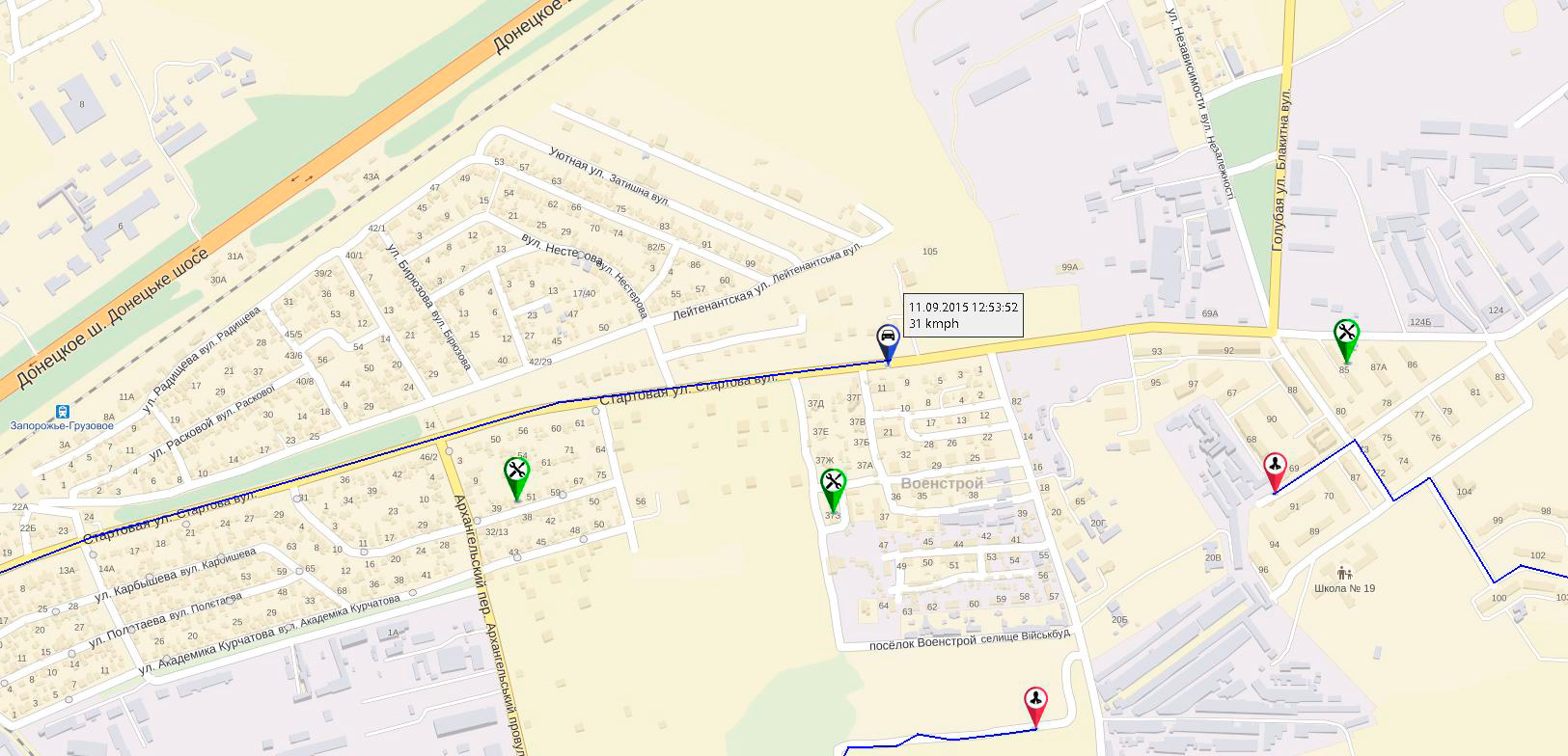 Модуль работы с GPS: контроль местонахождения сотрудников и автотранспорта, поддержка различных треккеров, вывод положения на карту, фиксация и вывод путевых листов.
