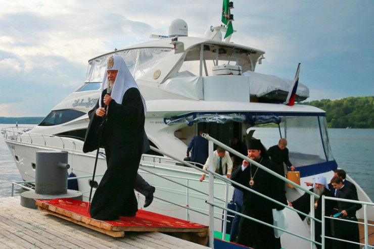 Катается на персональной яхте, летает на персональном самолете, ездит в представительских мерседесах с мигалками, имеет также персональный "православный поезд".