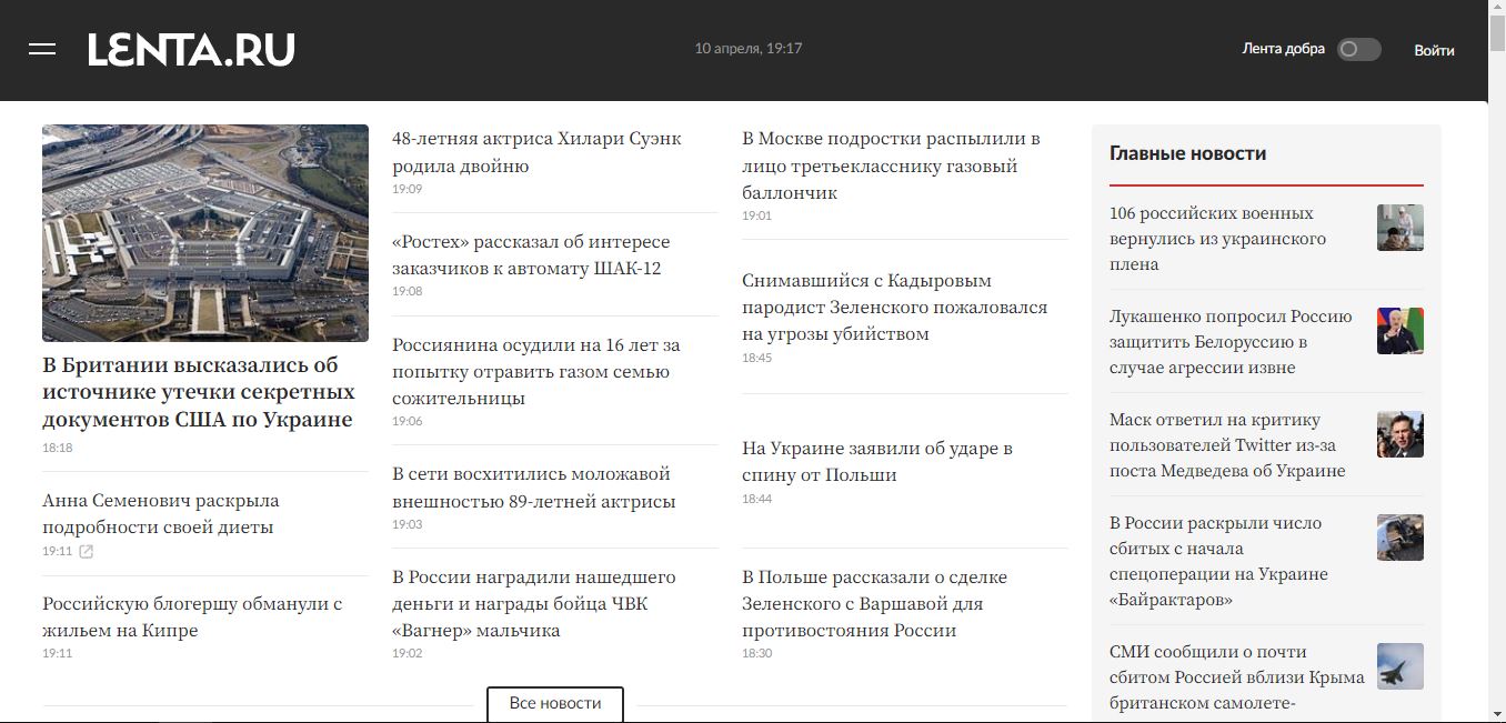 И откуда Алекс берет эти неудобоваримые новости? Во лента ру врать не будет, все в РФ зашибись. Диеты, кошки, жопы, какая такая война?