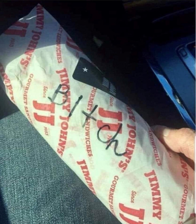 Муж с женой ехали по своим делам, жена сказала, что проголодалась, и они остановились у какого-то заведения с сэндвичами, где можно было купить бутерброд навынос. Жена сходила в заведение, купила сэндвич и вернулась в машину. Муж взглянул на сэндвич и увидел на нем вот эту надпись.