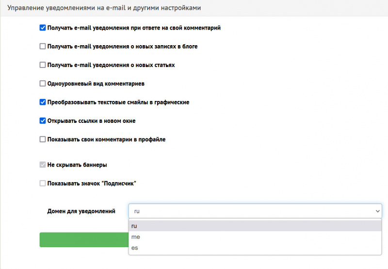 Напоминаю, что домен, от которого вам должны приходить уведомления с этого сайта, вы можете сами выбрать в личном кабинете в разделе "Настройки". Если будем добавлять новые домены (зоны) - там в списке они появятся.