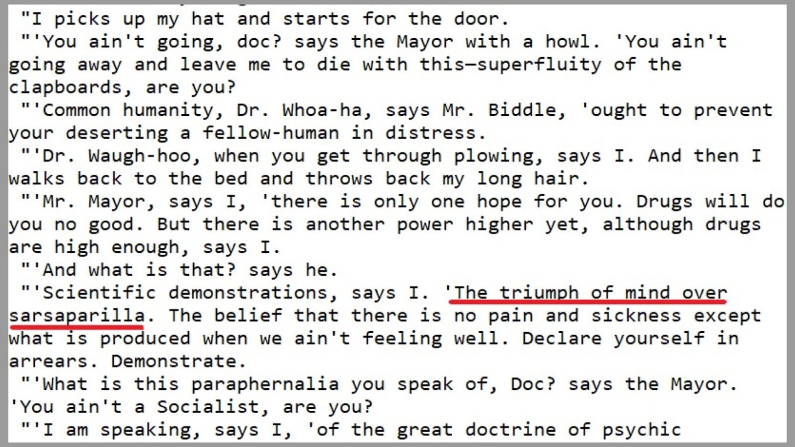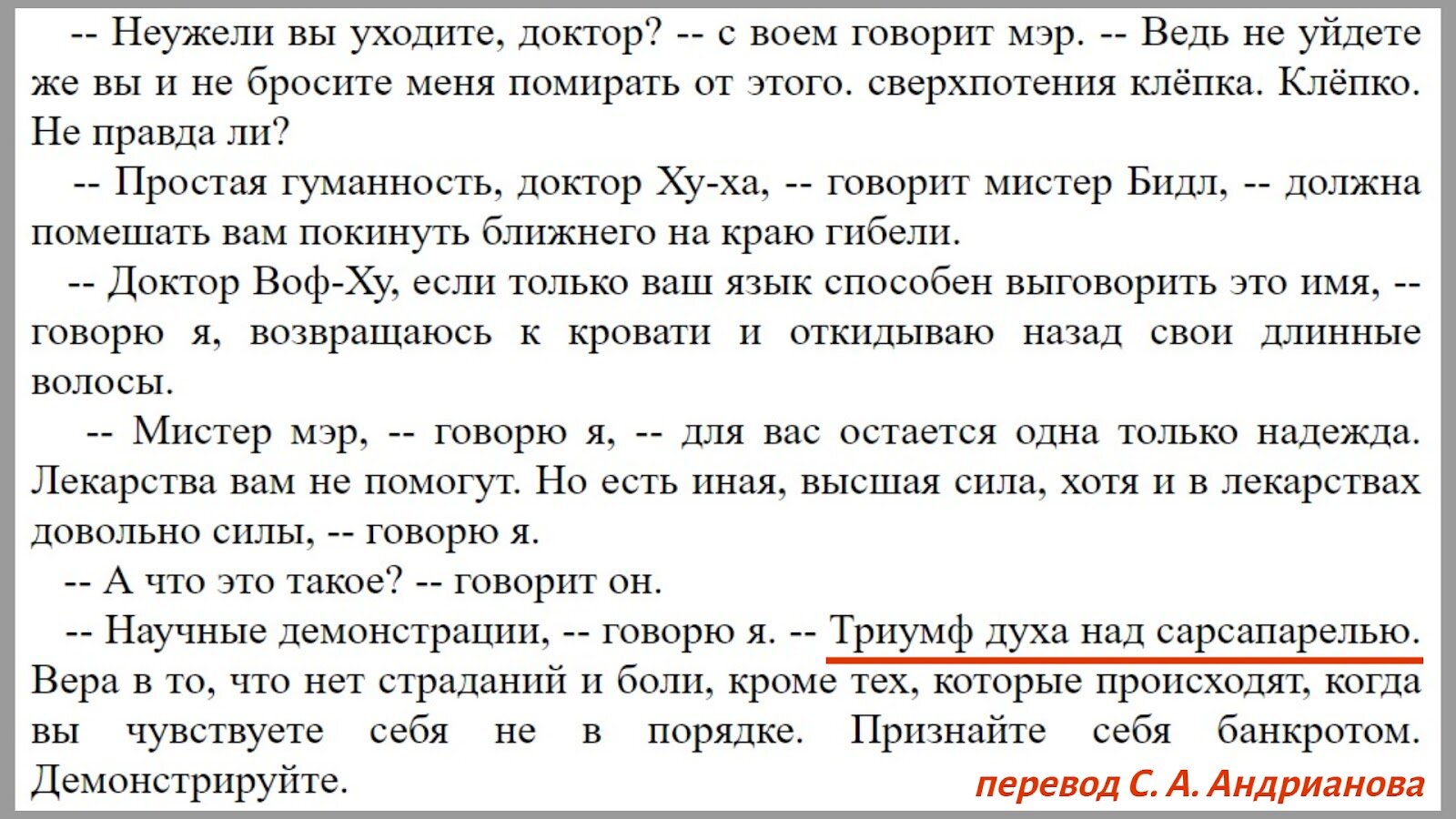 А саму фразу "Победа разума над сарсапариллой” придумал Корней Чуковский, который первым перевёл рассказ О.Генри на русский язык в 1923 году. Именно в переводе Чуковского рассказ издавался чаще всего, и именно этот вариант фразы стал крылатым.