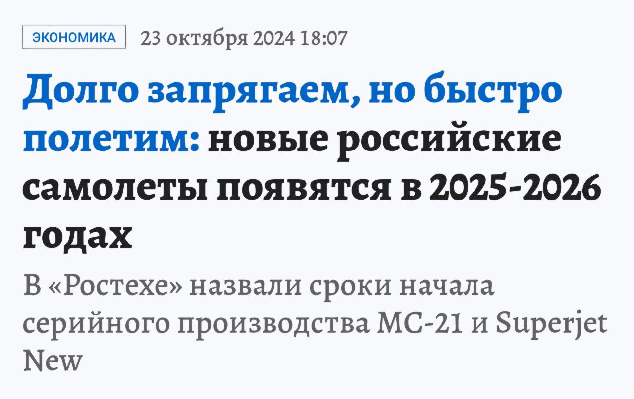 К сожалению, 2023 год был особенно тяжёлым для нашей отрасли, и серийное производство МС-21 в этом году не начиналось 😟