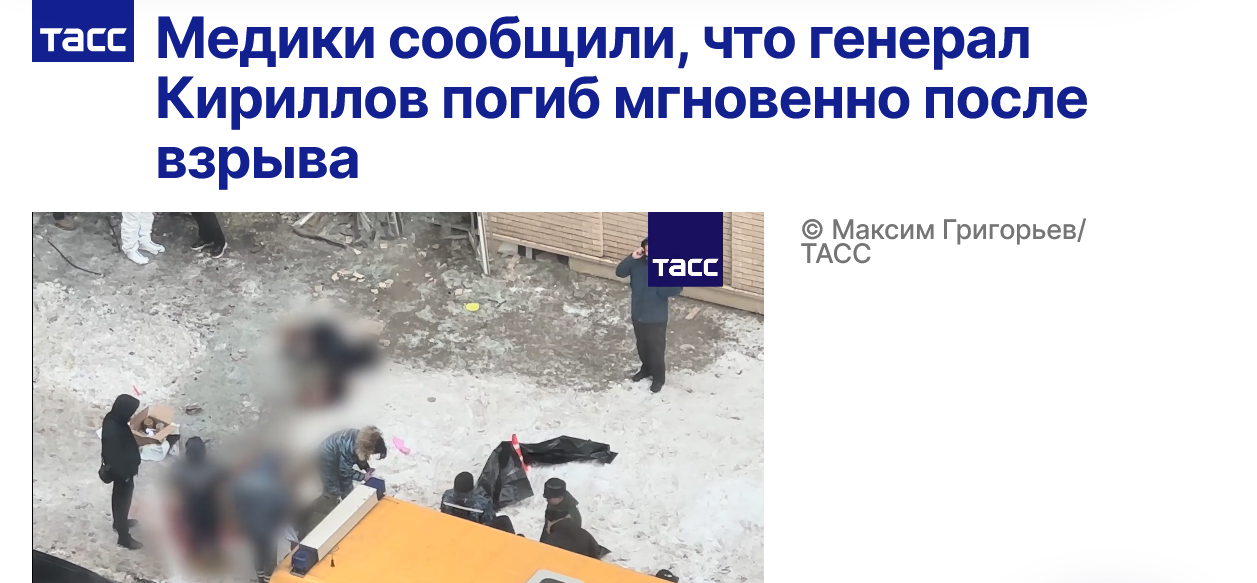 В Москве грохнули начальника войск радиационной, химической и биологической защиты (РХБЗ) генерал-лейтенанта Игоря Кириллова и его помощника. Рассматривается диверсия со стороны ВСУ.