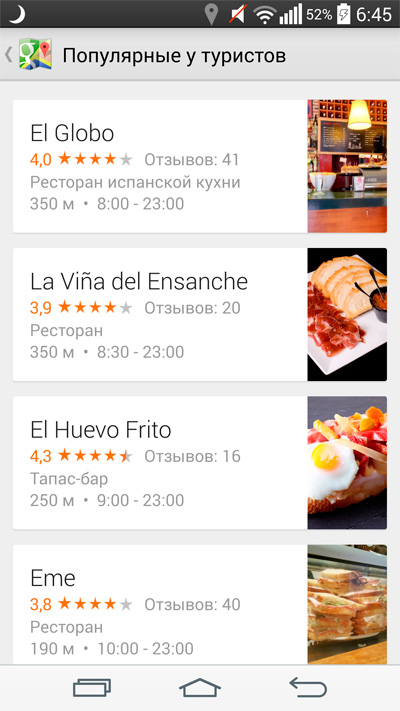 А тут Google вроде предлагает свои варианты - типа как другие пользователи рекомендуют. Ну, купились на Google - ресторан испанской-басконской кухни. Недалеко.