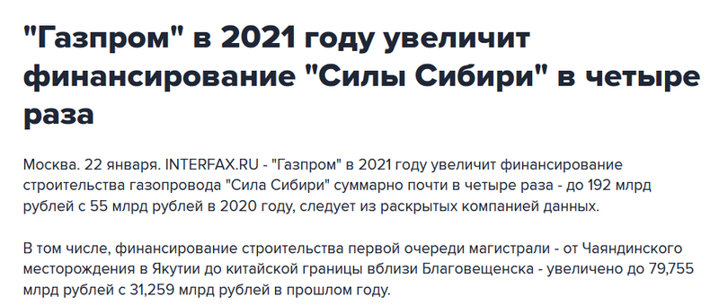 Под двести миллиардов рублей дополнительно вбухают в "Силу Сибири", чтобы поставлять газ китайцам по тому самому засекреченному контракту.