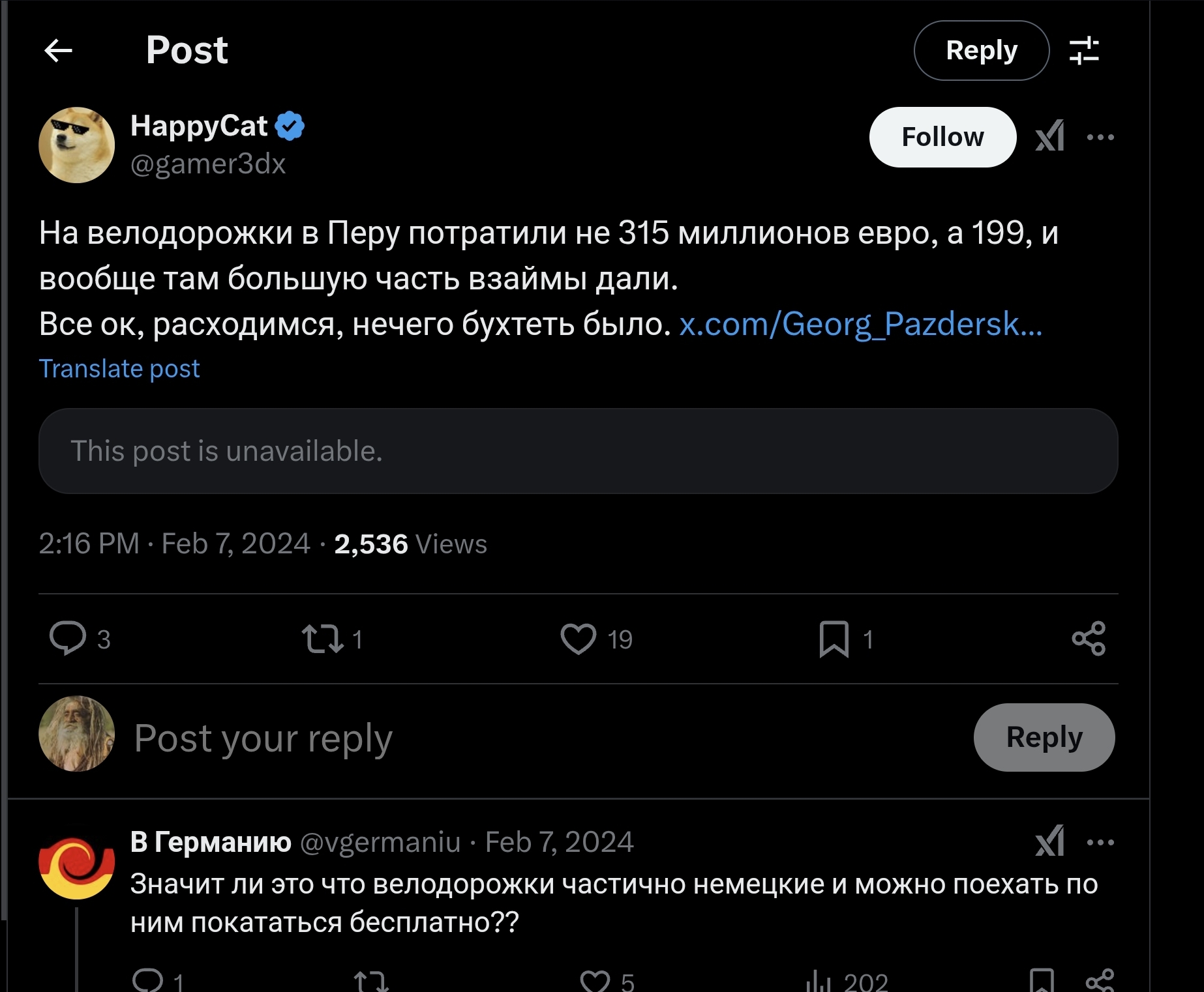 Да, в Германии тоже все классно. Например, субсидии на постройку велосипедных дорожек в Перу. 315 миллионов. В Перу? Велосипедные дорожки? За счет немецких налогоплательщиков? WTF?