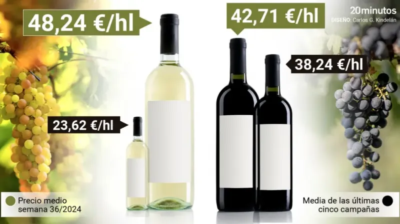 Причем средняя стоимость гектолитра (100 литров) белого вина выросла до 48,24 евро, тогда как средняя стоимость гектолитра красного вина по Испании -  42,71 евро.