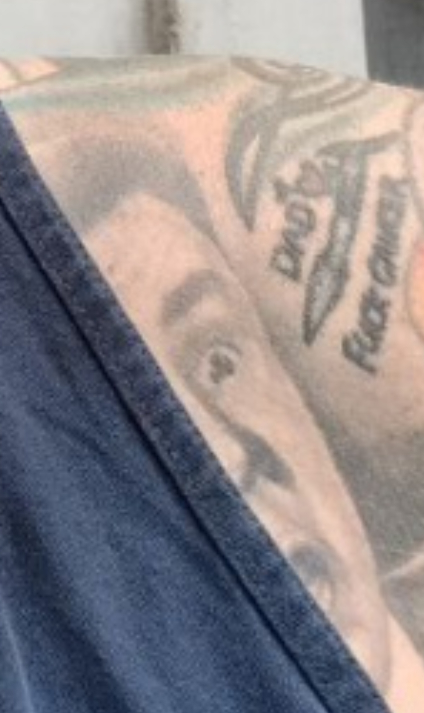 Что за рожа у него набита на груди - не опознал, но мне интересно, где у него набита рожа Путина - на заднице, что ли?