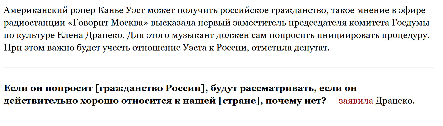 При этом совершенно очевидно, что выступать в РФ Уэст не будет: он, конечно, на всю голову ударенный, но его менеджеры и продюсеры не дадут ему так рисковать своей карьерой в Штатах.