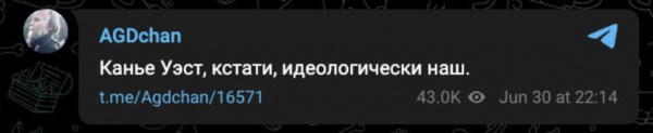 Уэст за Путина. Поэтому он может делать что угодно и быть кем угодно, его не осудят. Если только он его негативное поведение положат Путину в папочку, и тот разгневается.