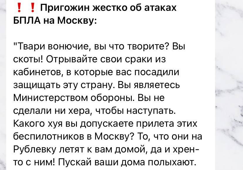 В том числе "любовное посланьице Собянчику", от не светящихся активно в медиапространстве "ЧВК". Мол, не будешь под нами и конец твоей Московушке.