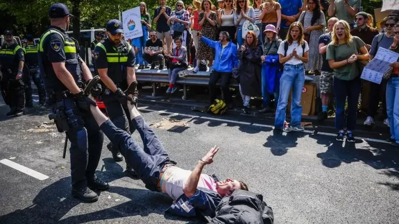 Среди участников субботней акции протеста было несколько голландских знаменитостей, в том числе актриса Карис ван Хаутен, известная по роли Мелисандры в сериале "Игра престолов". Она была арестована, но позже ее отпустили.
