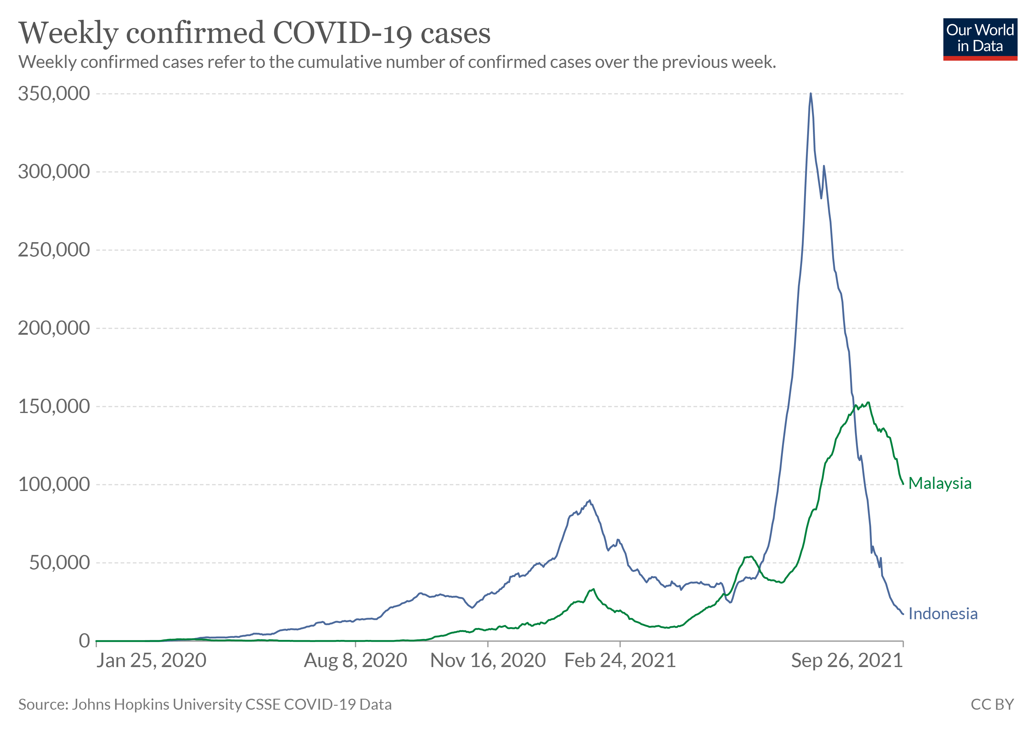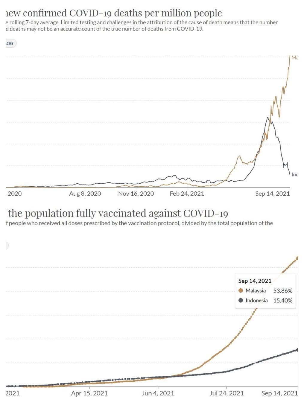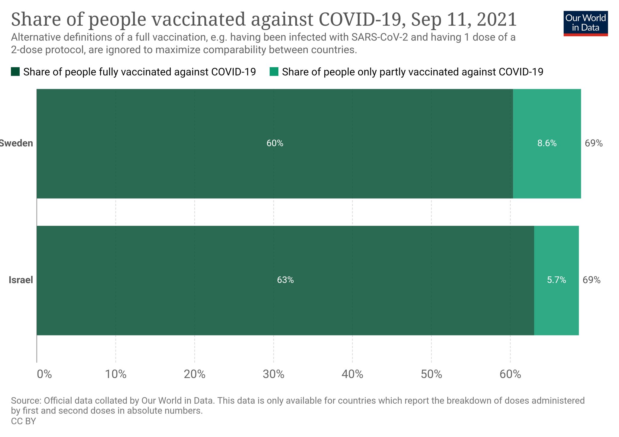 Мне вот этот график говорит о том, что в обеих странах "расслабились", ещё даже не достигнув нужного порога вакцинации – и забыли про все прочие меры. За счёт чего профукали у себя крайне мощные волны (максимальные с самого начала пандемии, для обеих стран).