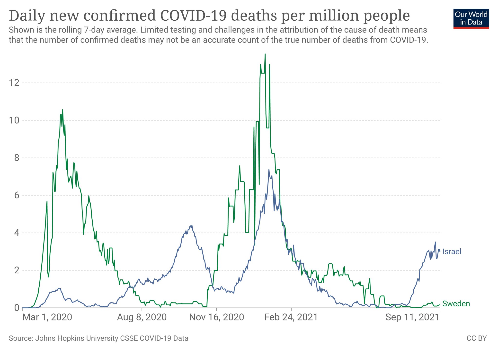 И логично оценивать то, что было в Швеции в сравнении с соседями, а не с Израилем. Например, ту же Индию, насколько я помню, накрыло только второй волной.