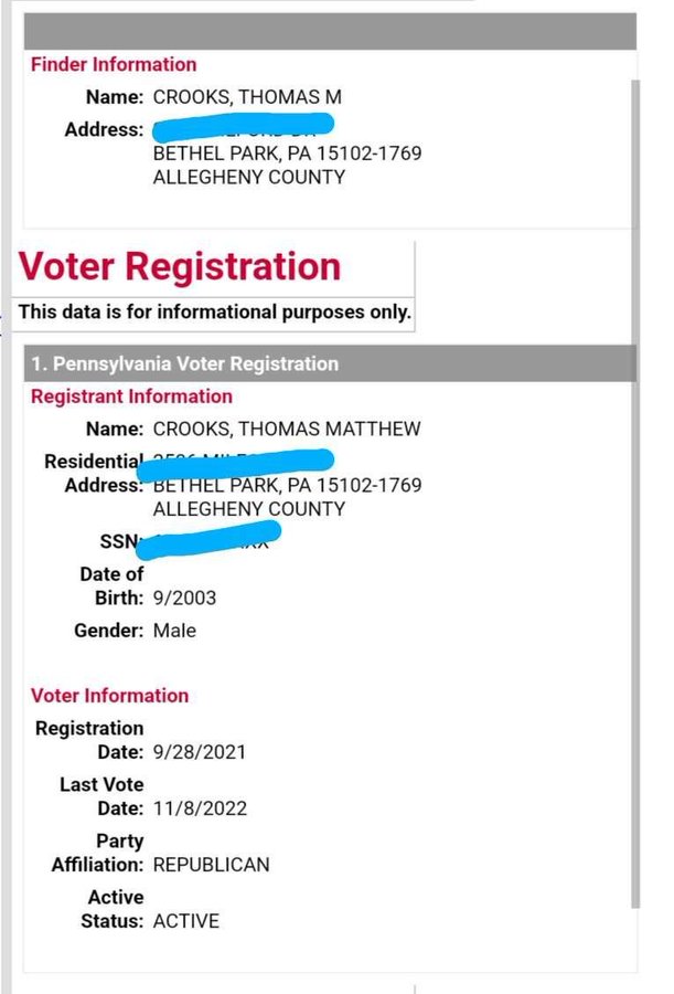 Крукс из Бетел-Парка, штат Пенсильвания, произвел несколько выстрелов - один из них попал Трампу в ухо - на митинге под открытым небом в Батлере, недалеко от Питтсбурга.