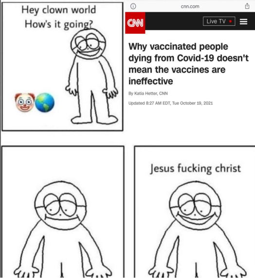 Я просто слегка злюсь, когда мне говорят, что иммунизированные якобы распространяют вирус лучше, чем неиммунизированные - поэтому и встрял с разъяснениями. Ничего личного, как говорится. Я просто искренне не понимаю, что движет людьми, утверждающими, будто чёрное - это белое, и надеюсь, что это просто от неведения. Не может же человек такое утверждать из злого умысла, ведь правда?