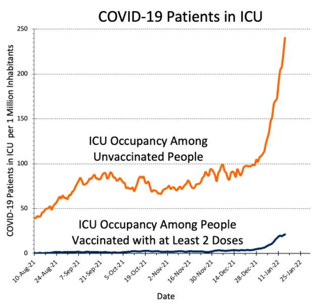 В Швеции опубликовали очень интересную и поучительную статистику попадания вакцинированных и не вакцинированных пациентов в интенсивную терапию с 1.10.21 по 10.01.22 с подтверждённым диагнозом covid-19. Эта статистика даёт наглядное представление об эффективности вакцин в предотвращении тяжёлых случаев ковида и позволяет сравнить риски для вакцинированных и не вакцинированных.