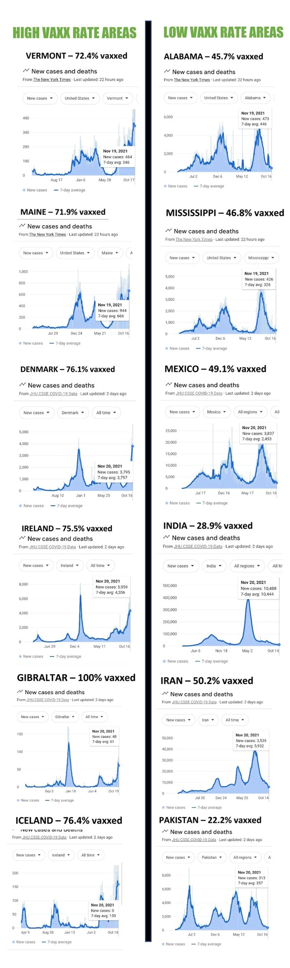 Многие страны с 70%+ вакцинации внизу списка по новым заражениям (Италия, Испания, Франция, Финляндия, Канада и т.д.).