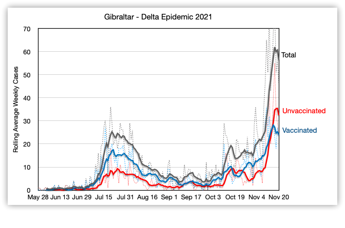 См. тот же Гибралтар, в котором у 40% уже три дозы и распространение не остановилось.
